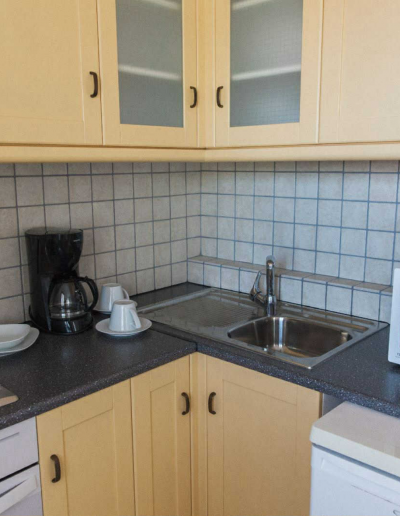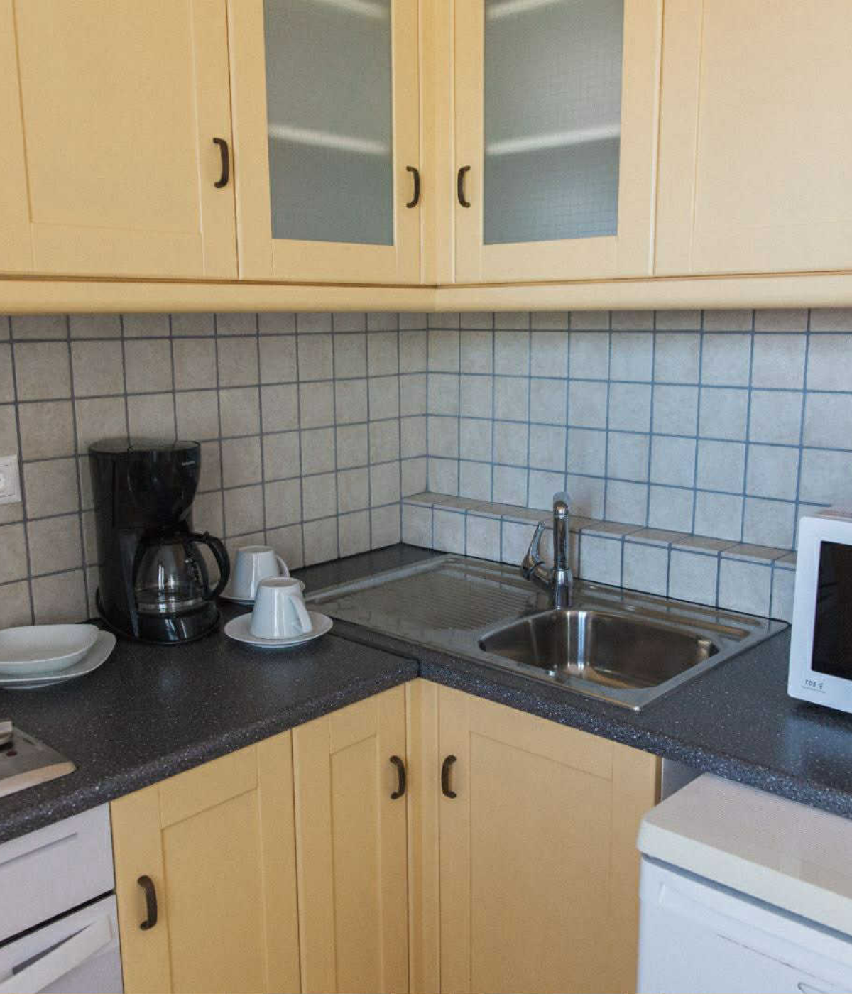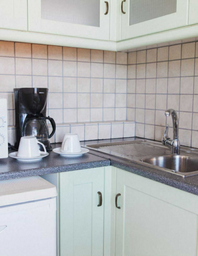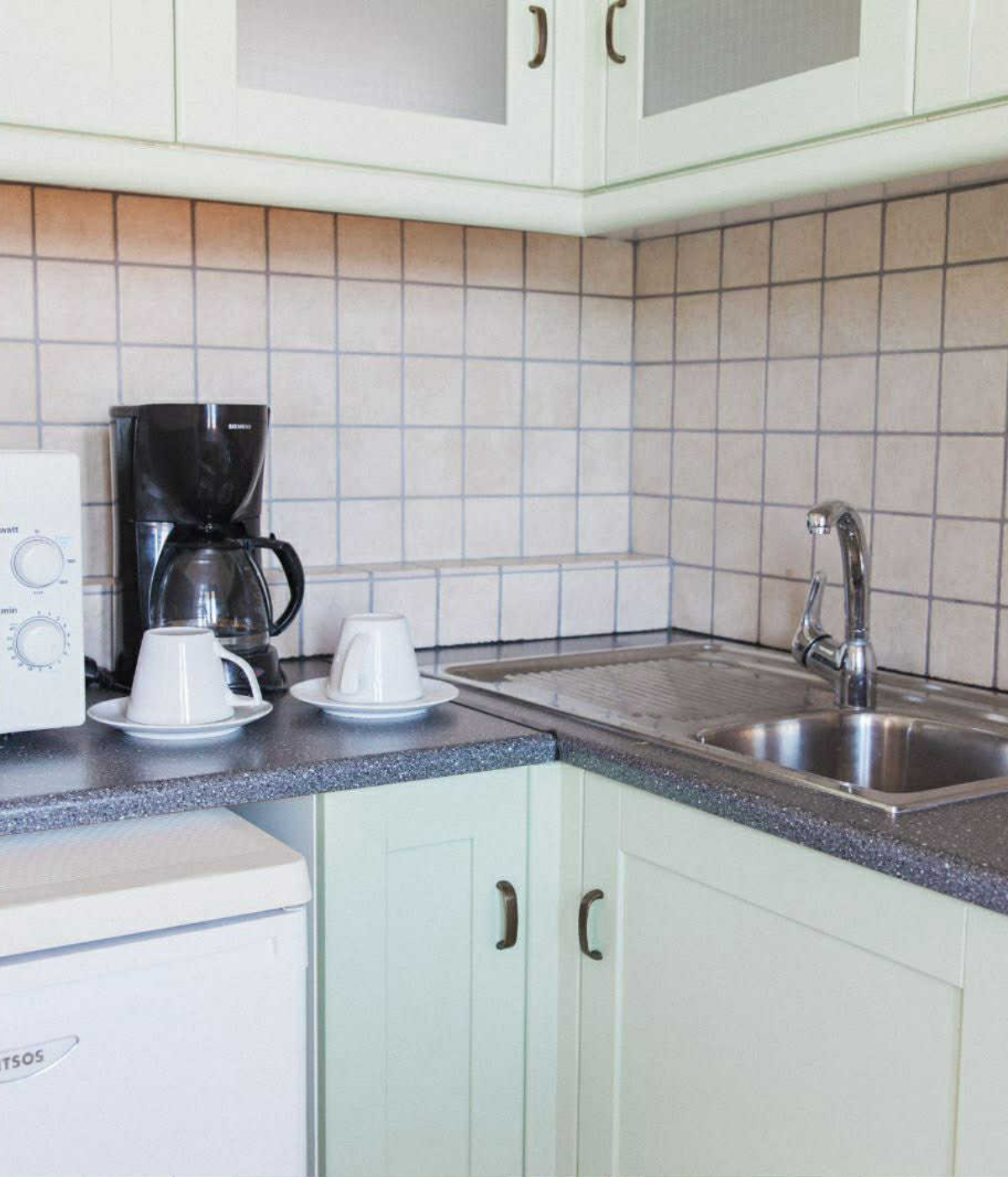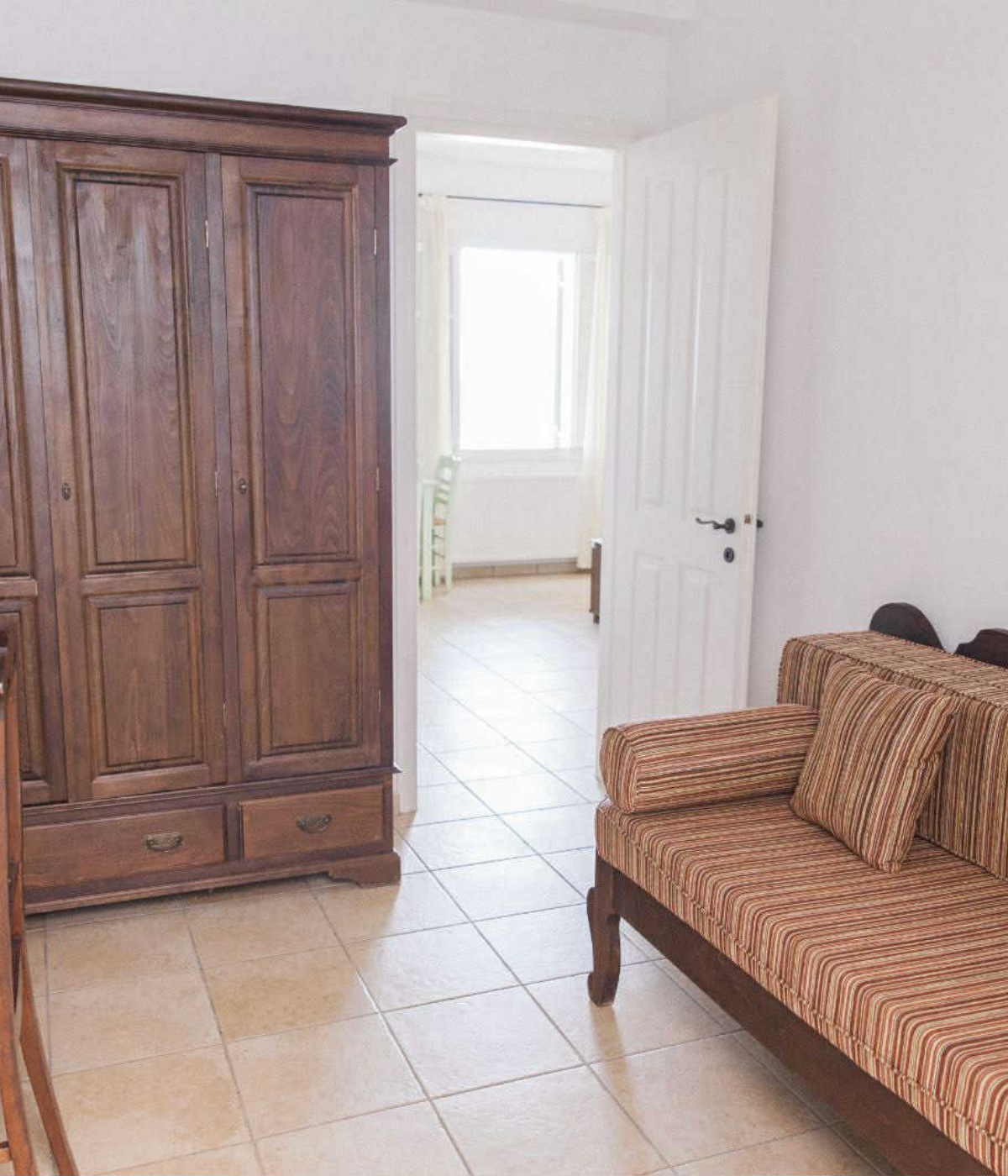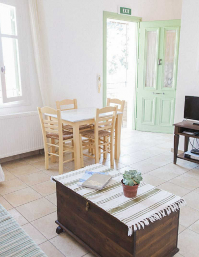 Κάθε σουίτα προσφέρει ξεχωριστό υπνοδωμάτιο και καθιστικό, με άνετους χώρους, φυσικό φως και αίσθηση οικειότητας που θυμίζει εξοχικό σπίτι. Η πλήρως εξοπλισμένη κουζίνα περιλαμβάνει όλα όσα χρειάζεστε για να απολαύσετε πρωινό ή ελαφριά γεύματα με φόντο το απέραντο γαλάζιο, ενώ ο ανεξάρτητος σχεδιασμός κάθε διαμερίσματος εξασφαλίζει απόλυτη ιδιωτικότητα και χαλάρωση.