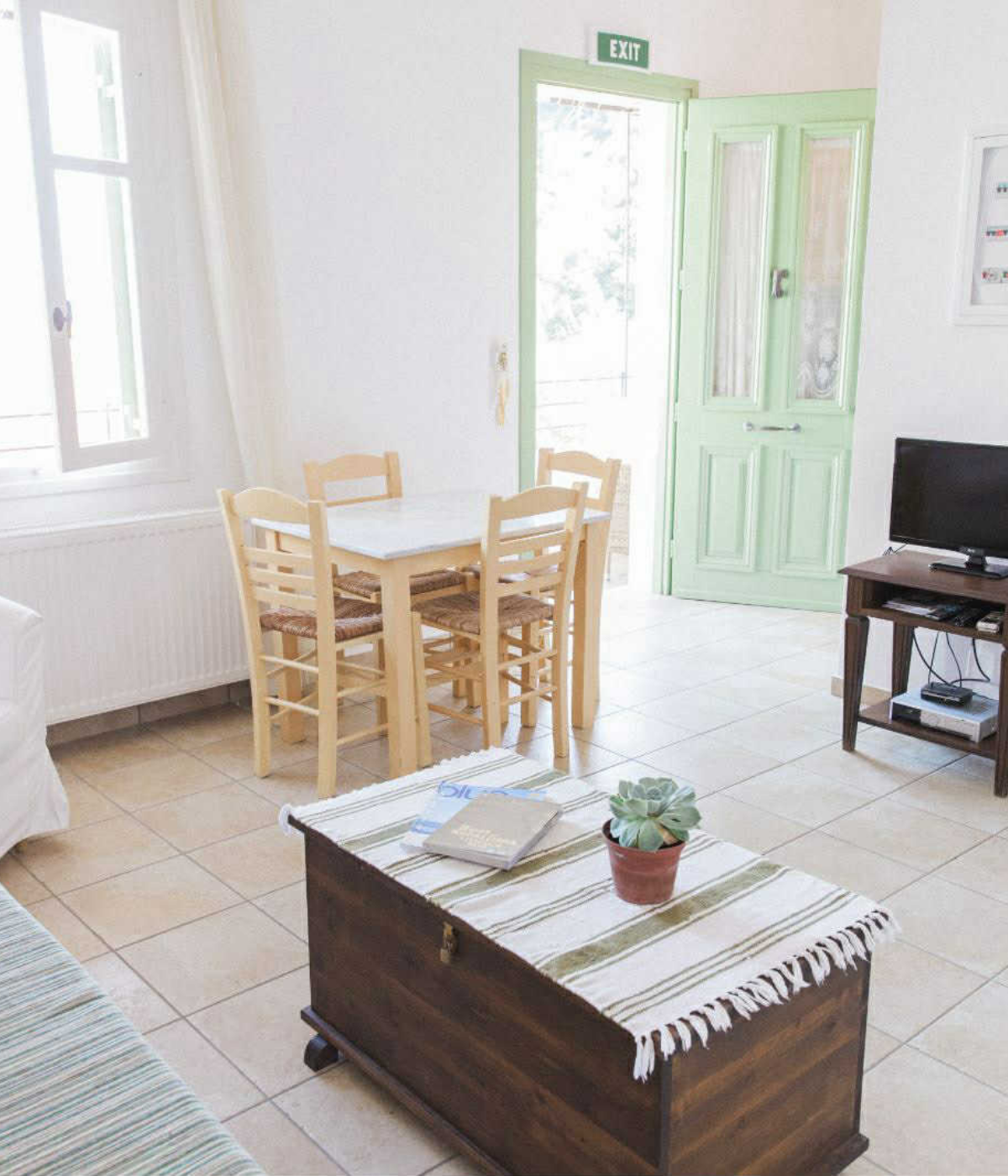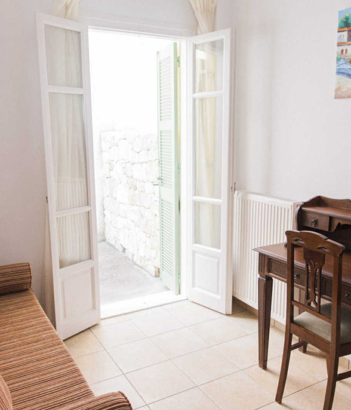Από το μπαλκόνι σας θα δείτε τον ήλιο να αναδύεται πάνω από τον κόλπο των Φρικών, βάφοντας τη θάλασσα με χρυσές αντανακλάσεις και χαρίζοντας μια εμπειρία που δύσκολα περιγράφεται με λόγια. Μια στιγμή ησυχίας, πληρότητας και ομορφιάς – το ιδανικό ξεκίνημα για κάθε μέρα διακοπών.