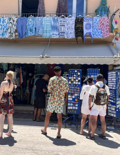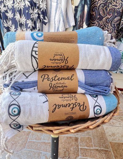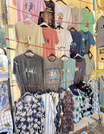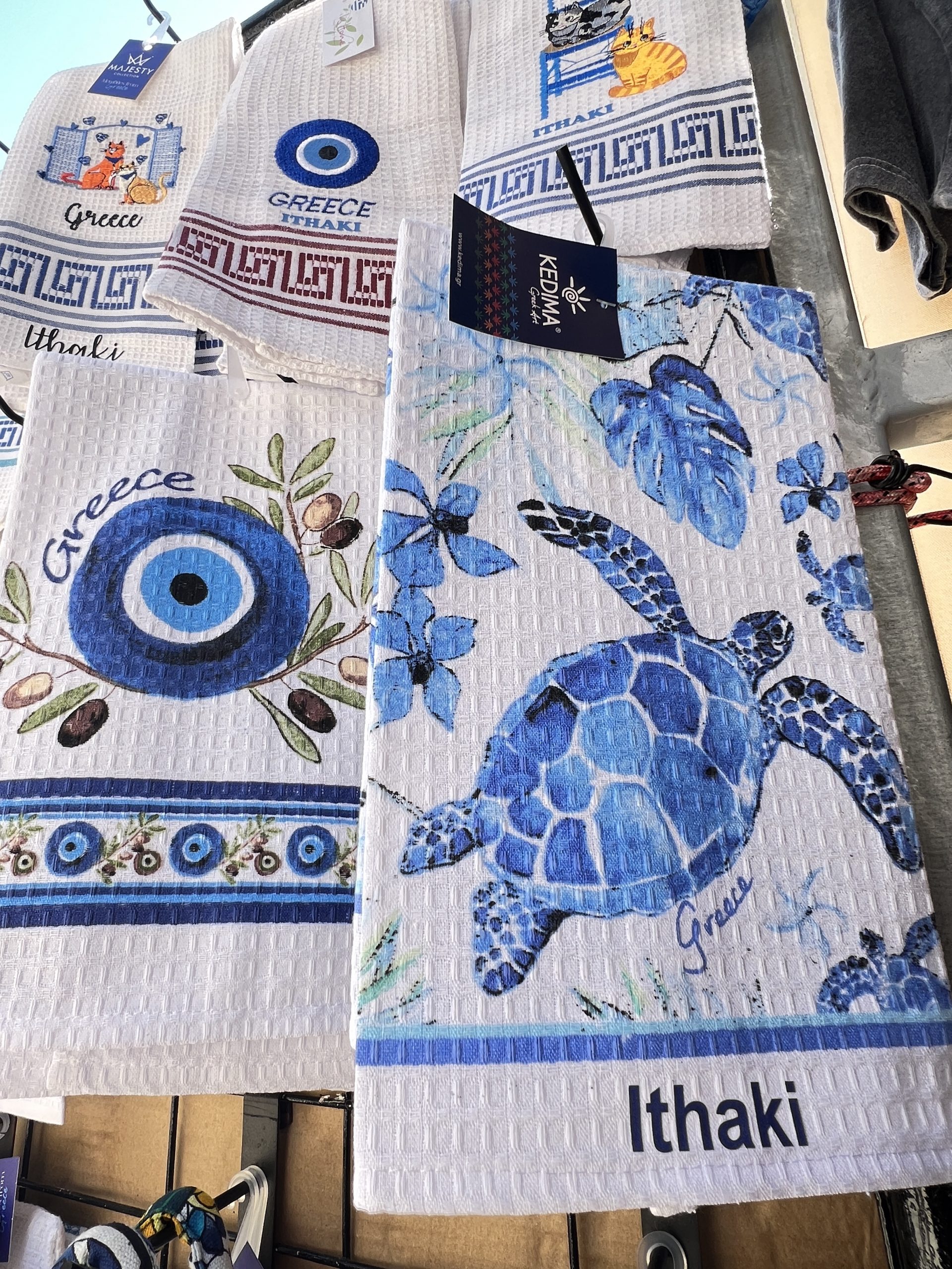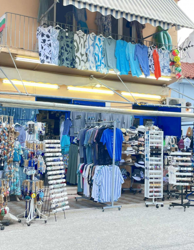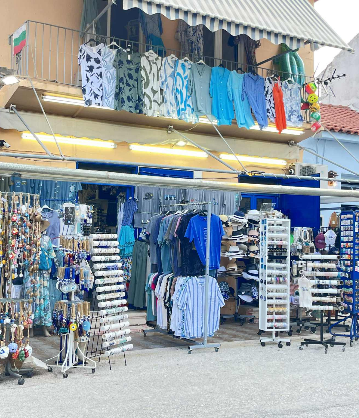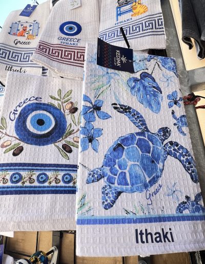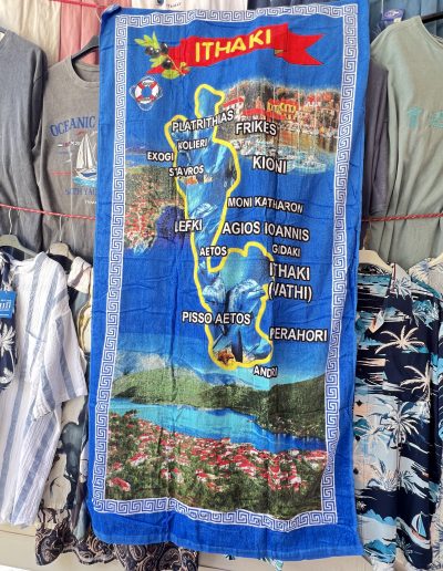 Στους πάγκους θα βρείτε T-shirts με το όνομα της Ιθάκης, φούτερ και ρούχα καθημερινής χρήσης, ιδανικά για τη βόλτα ή το ταξίδι της επιστροφής. Υπάρχουν επίσης σαγιονάρες, παπούτσια και πετσέτες θαλάσσης, για όσους θέλουν να είναι έτοιμοι για την παραλία, καθώς και γυαλιά ηλίου και κοσμήματα που δίνουν μια απλή πινελιά στο καλοκαιρινό σας στυλ.